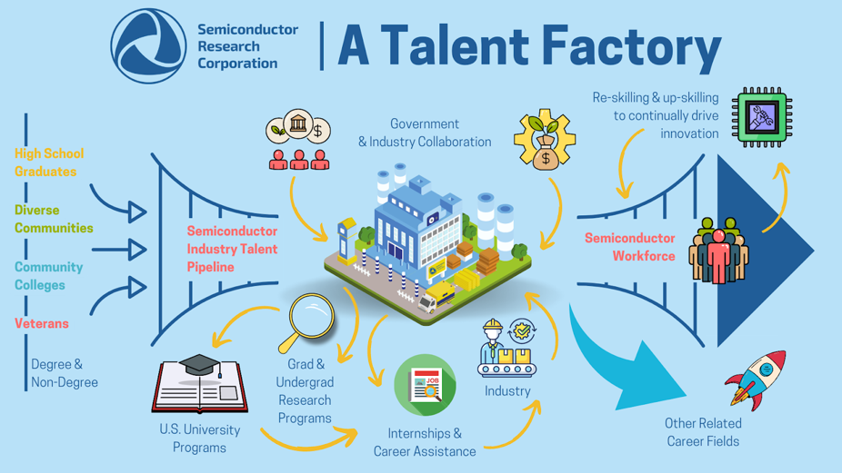 - SRC is a scalable ‘Talent Factory’ that even today supplies nearly 20% of the semiconductor PhD workforce nationwide, and there are mechanisms in place to increase the output manyfold as the demand grows.