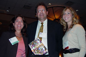 Professor Mark Law, recipient of the 2006 Aristotle Award, pictured with current students Diane Hickey (L) and Leah Edelman (R)