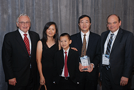 2013 Technical Excellence Award Winner, Professor David Pan, his wife, Shaoling Zhu and son Jeffrey with Larry Sumney (left) and Steve Hillenius (right) at TECHCON 20132013 Technical Excellence Award Presented to David Pan from UT/Austin