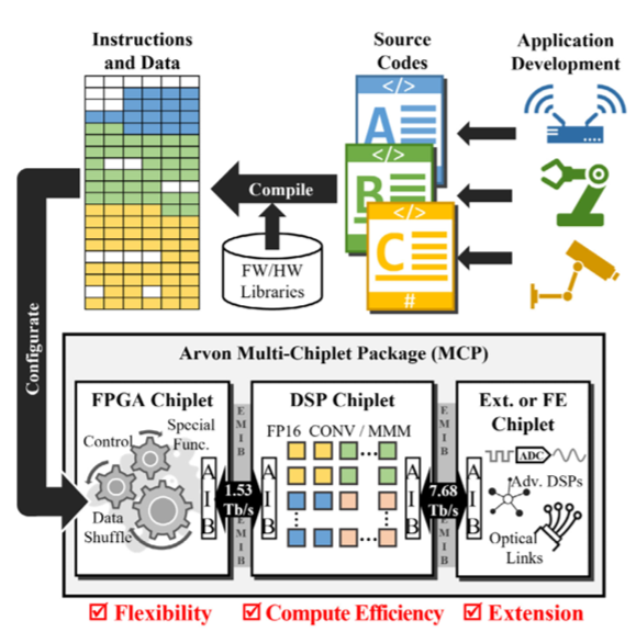 The team used two strategies to scale up and scale out the hardware to support larger models of more complex functions. Homogeneous tiling means using identical tiles (or units) to build up the hardware, while heterogeneous integration, which involves combining different types of units to handle various tasks, allows the system to support larger and more complex models. With Liaisons from JUMP 2.0 member companies Intel, RTX, Samsung, and TSMC, work on this composable accelerator effort is greatly liked by DARPA.