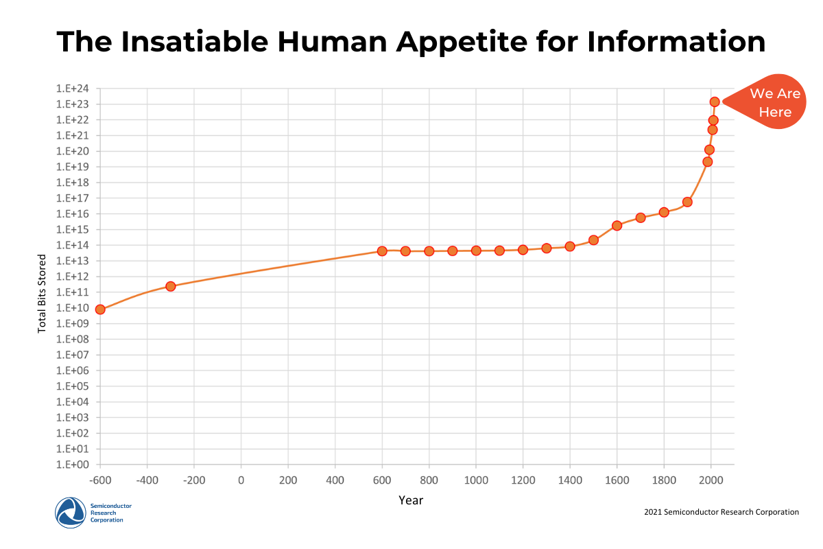 Our appetite for data appears insatiable, with another Gutenberg moment on the horizon. Beyond the microchips that power the ubiquitous smartphone in your pocket, semiconductors are indispensable in automobiles, jewelry, airplanes, machinery, appliances, satellites, and countless other facets of modern life. With each passing day, our reliance on these tiny marvels only grows, as our daily activities increasingly demand their capabilities. Our consumption of bits (data) is approaching near-vertical growth.